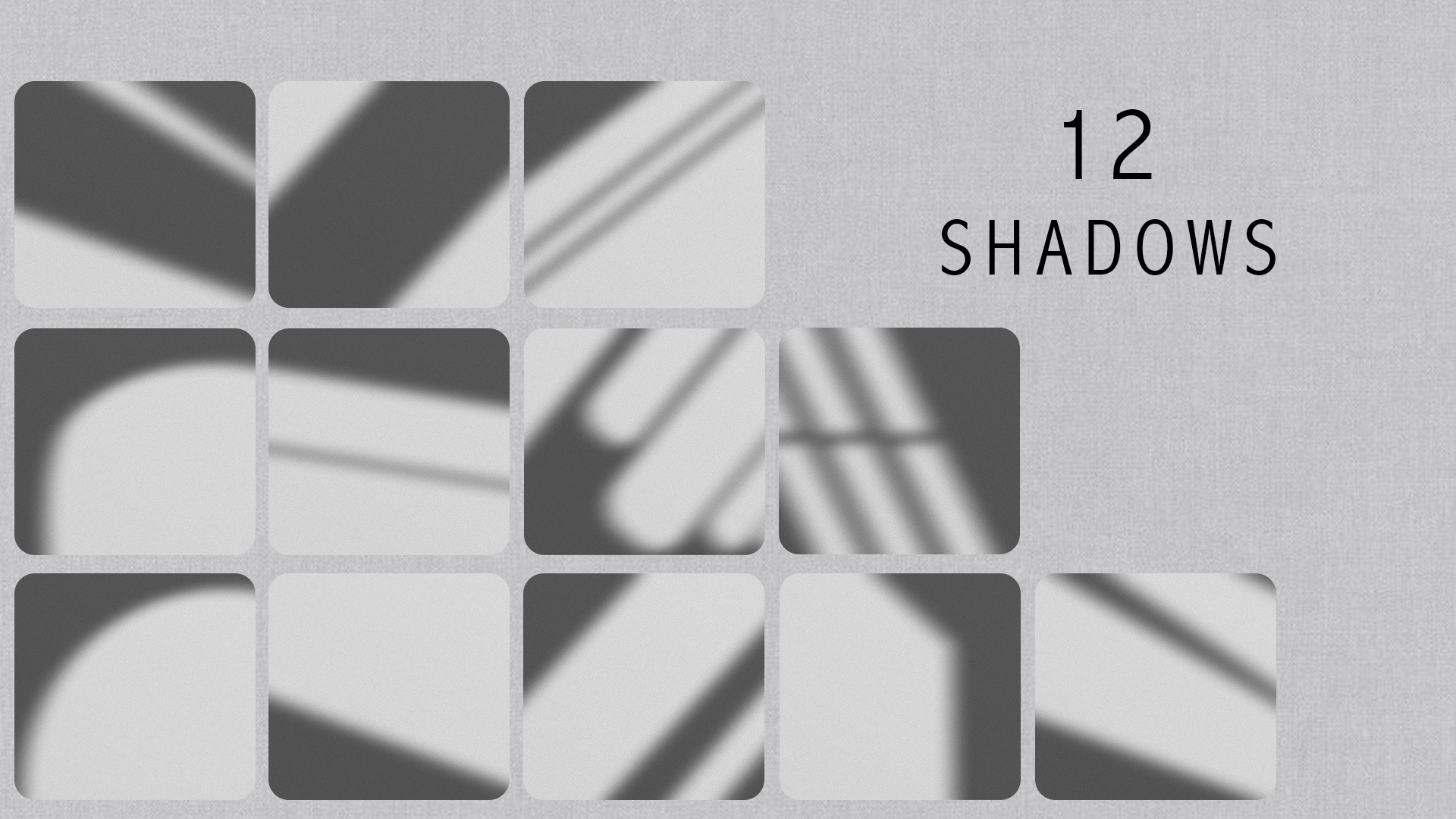 - 1 PSD file with 12 realistic shadow overlays and 3 seamless patterns